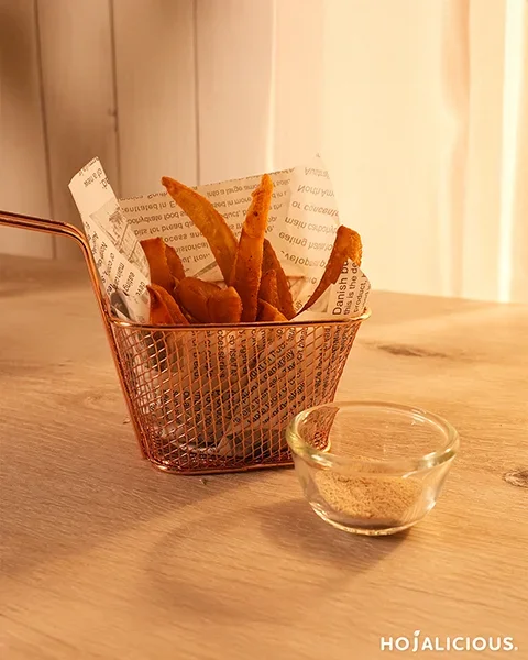 Visual: Golden fries with pink plum dust — colorful and inviting.