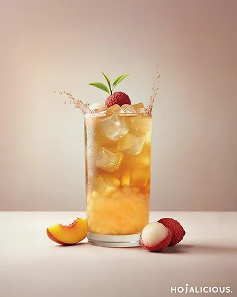 Lychee brightens the Ruby Black Tea aroma, while peach coconut jelly adds a chewy highlight—turning this into a layered fruit tea you can both sip and enjoy with texture.