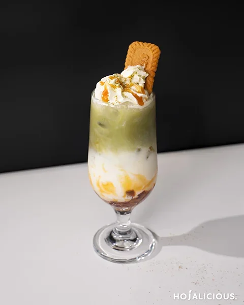 This beverage breaks the stereotype that matcha must pair with red bean. We reinterpret the Matcha Latte using the sweet logic of a Caramel Drink. The bittersweet caramel, the umami of matcha, and the Coffee Jelly at the bottom stack up to create a layered Coffee Jelly Drink that is as rich as a dessert.