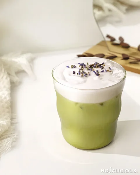 Topping the drink, dried lavender buds bring both a visual accent and a subtle floral scent. The gentle purple contrast against the vibrant green base captures attention instantly, making it perfect for both taste and presentation.