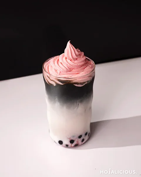 This beverage breaks the mold of the traditional Coffee Latte, boldly mixing Western Charcoal Drink elements with the Asian trend of fruit-flavored foam. The striking contrast between the pitch-black coffee and the soft pink cream offers unprecedented visual tension and flavor surprises for consumers looking for a unique Coffee Boba Drink.