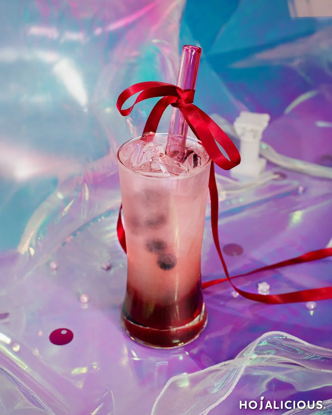 Blending the richness of strawberry jam with the bright lift of sparkling water and the natural acidity of blueberries, it becomes a dreamy pink drink with a playful, effervescent character.