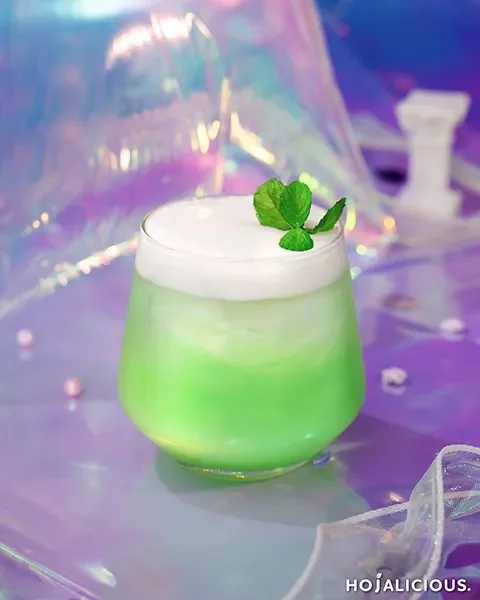 Sailor Jupiter Storm layers electric green liquor with creamy milk cap, blending bold charm and delicate sweetness.