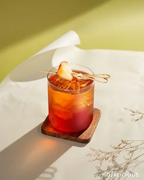 A sophisticated cocktail with a plum wine base. It blends the sweet-tartness of roselle (hibiscus), the delicate aroma of peach oolong tea, and the mellow depth of plum wine. The result is a clean, fruity, and refreshing drink with a gentle tea finish—a quality choice for summer or celebratory occasions.