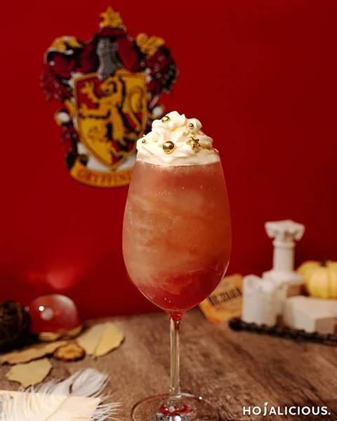 A harry potter drink recipe in golden hues, layered with floral notes, vodka depth, and creamy brilliance.
