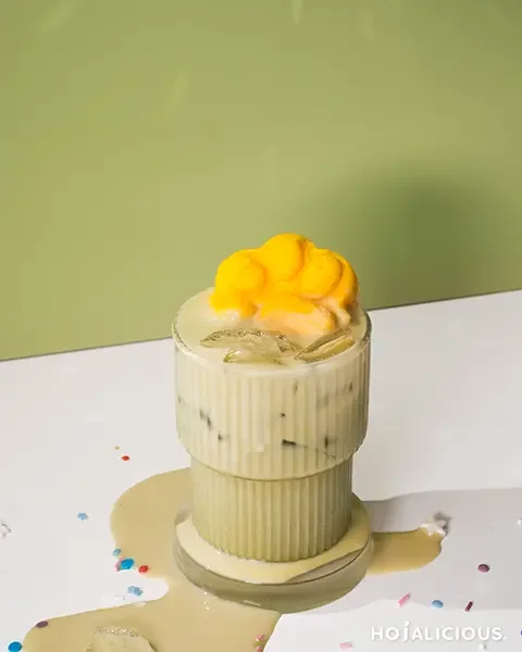 A misty swirl of matcha and milk, topped with a playful mango paw-shaped ice cube, perfectly captures the ENFP’s free-spirited creativity—both comforting and full of surprises.
