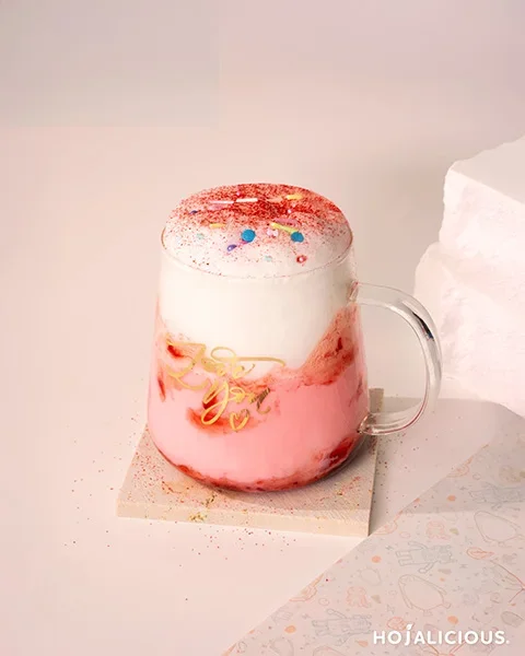 Blending the rich aroma of strawberries with the creamy texture of milk foam, this dreamy strawberry latte captures both sweetness and style. It’s a winter-exclusive pink latte and one of Hojalicious’ signature aesthetic drinks inspired by anime charm and café artistry.